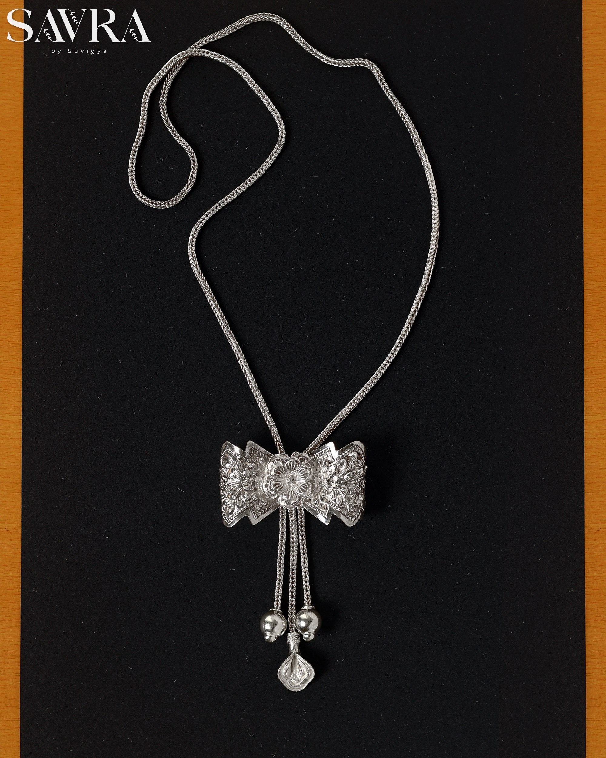 Regular price Rs. 27,000.00Sale price Rs. 27,000.00 Regular priceUnit price / perNecklace Dimension: 30 inches x 6mm A long, light-weight necklace composed of interconnected oxidized five-petal floral links and an adjustable chain.