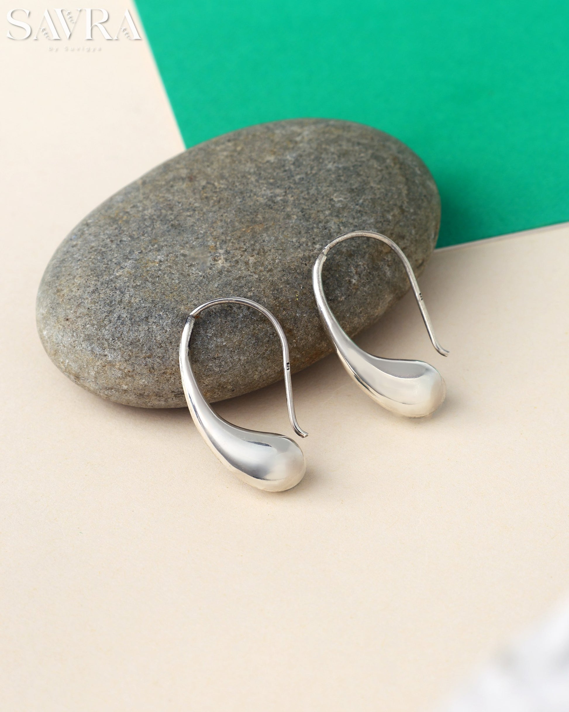 Contemporary polished silver earrings with a clean, ergonomic scoop shape that hooks easily through the ear.